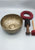 This is a Tibetan Antique Lingam Singing Bowl with Maroon Ring Cushions, Felt Drum stick and a Mallet. Lingam Singing Bowls have a protrusion at the botom of the bowl and have very beautiful shape. These bowls in the past used to be considered as a valuable goods which provides a beautiful resonance that enhances yoga, meditation, and prayer..