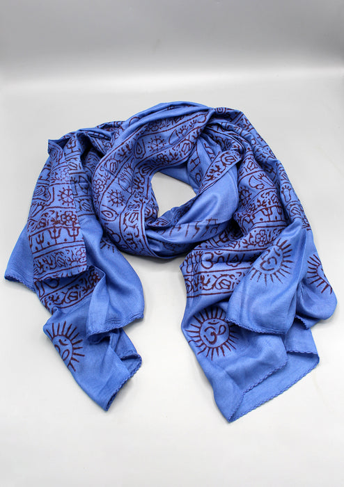 Blue Om Cotton Shawl, Cotton Yoga Scarf Large