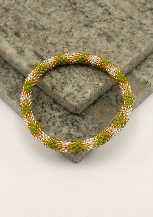 These fairly traded glass beads bracelet are meticulously crocheted by our women artists. Our woman artist carefully hand-strung these Roll On bracelet to give them the best shape and design.
