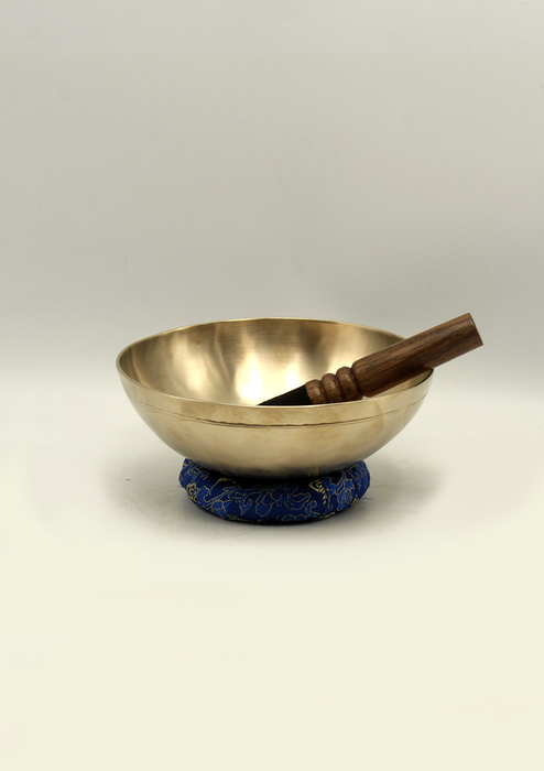 Introducing the Practitioner Grade Zen Singing Bowl from Bhaktapur a captivating masterpiece born in the heart of Bhaktapur, Nepal. Crafted by skilled artisans, this singing bowl is a harmonious fusion of art and sound. Fashioned from sacred metals like copper and tin, it boasts intricate etchings and motifs that pay homage to Nepal's cultural heritage. When played with a wooden mallet, it emits soothing, harmonic tones that invite relaxation and inner balance, making it perfect for meditation, yoga, and sound therapy. Owning a Bhaktapur Singing Bowl means holding a piece of Bhaktapur's rich tradition, while also supporting the artisans who create these timeless treasures. Immerse yourself in the serenity and culture of Bhaktapur with every melodious note.