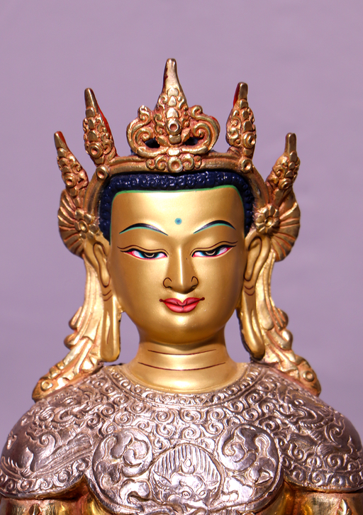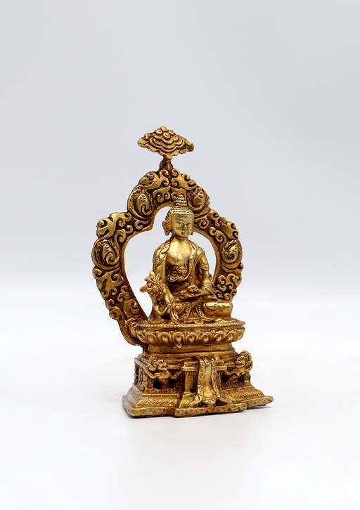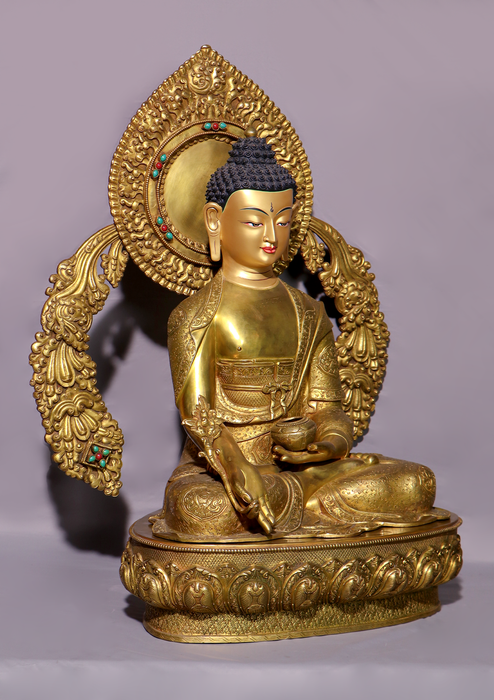 This exquisite Gold Plated Lapis Lazuli Medicine Buddha Statue is crafted by skilled artisans of Patan, where traditional metalwork techniques are ...