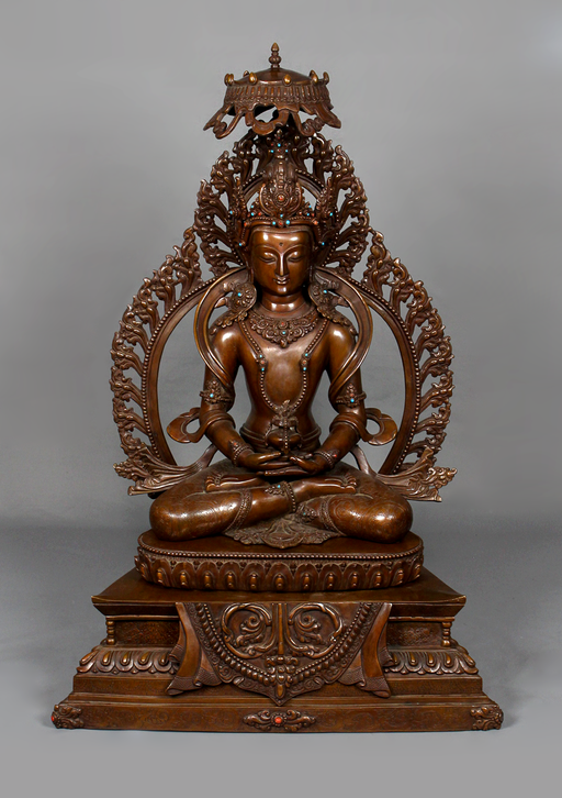 This Amitabha Buddha Singing Bowl is a traditionally handcrafted piece made by skilled artisans in Nepal, featuring image of Amitabha Buddha, the B...