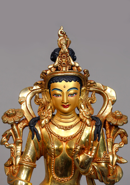 This Fully Gold Plated Standing Tara Statue is a graceful and radiant representation of the revered goddess, beautifully crafted with fine detailin...