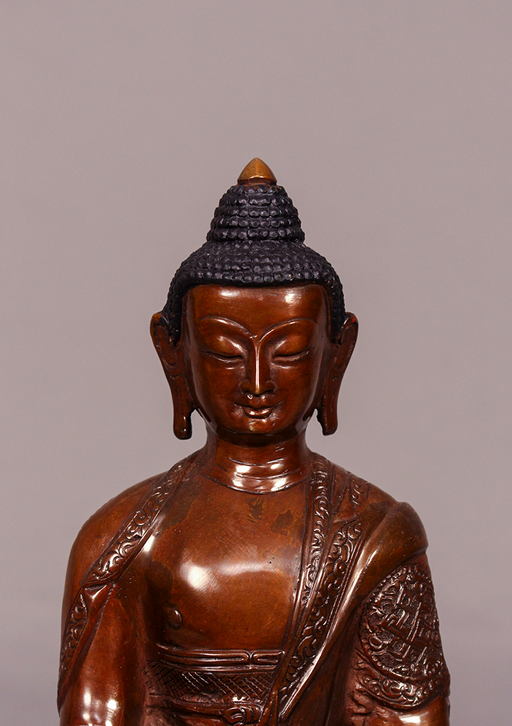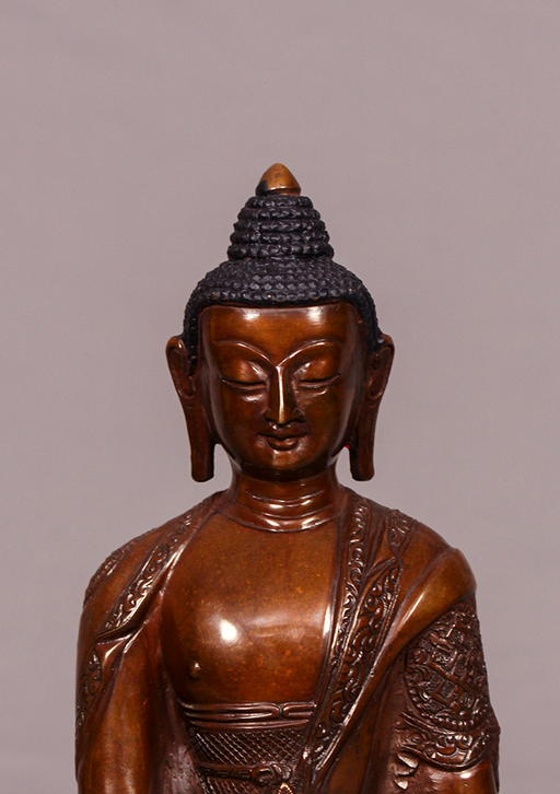 This beautifully handcrafted Oxidized Copper Shakyamuni Buddha Statue represents the timeless presence of the historical Buddha in a calm and medit...