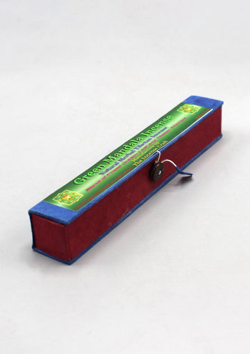 This green mandala incense is handmade in Nepal. This Tibetan incense is made of all natural ingredients. The incense is blend of finest Golden leaf and Tibetan Khempa.