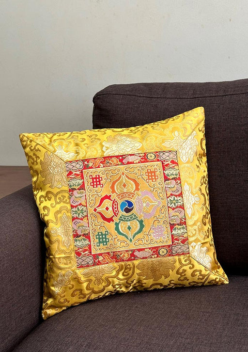 This beautiful Yellow Double Dorje Embroidered Cushion/Pillow Cover is hand-sewn and hand-loomed using high-quality cotton, making it a durable an...