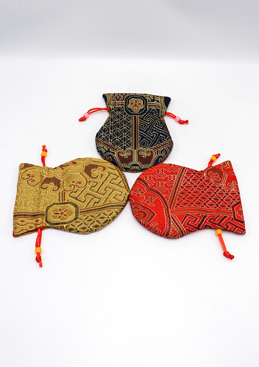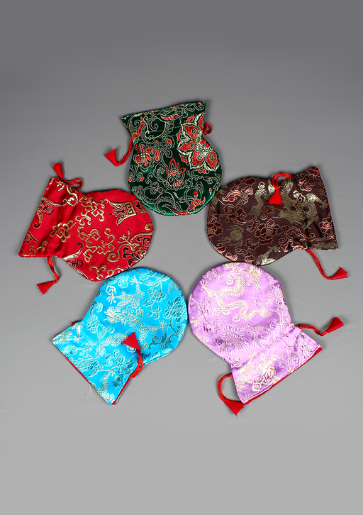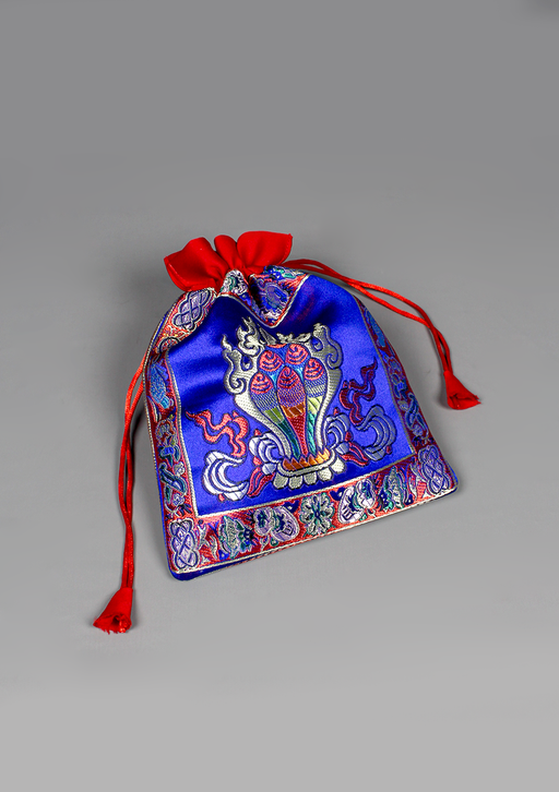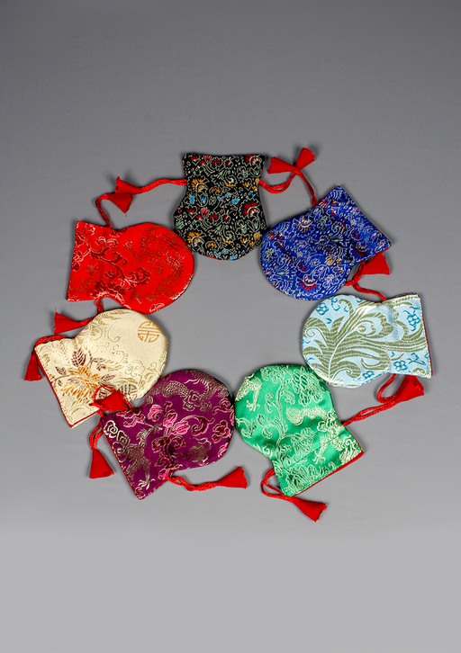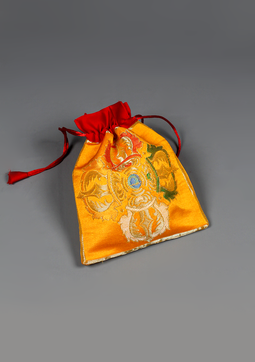 This exquisitely handcrafted Wish Fulfilling Jewel silk brocade drawstring mala bags are perfect for keeping your prayer mala, bracelet, coins, pen...