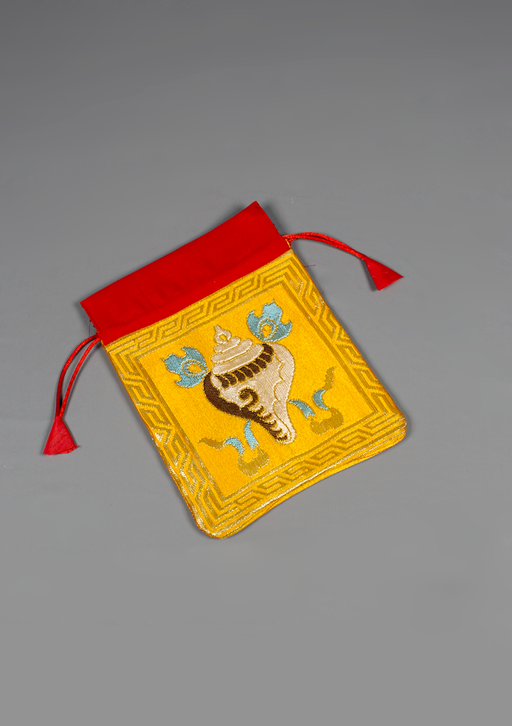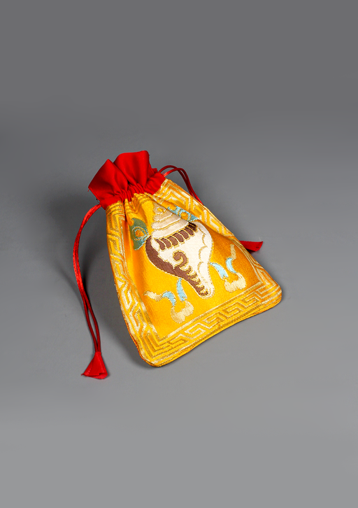 This finely handcrafted Conch brocade drawstring mala bag are perfect for keeping your prayer mala, bracelet, coins, pen drive, or small keys. Craf...