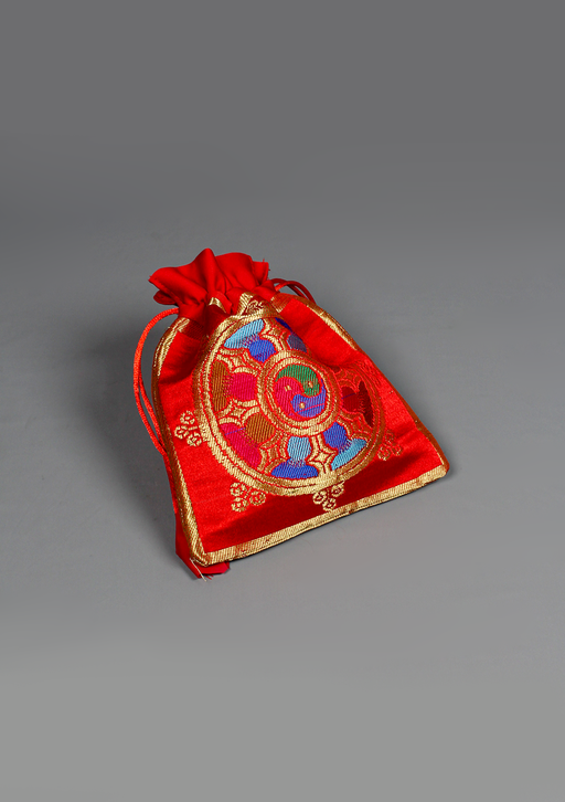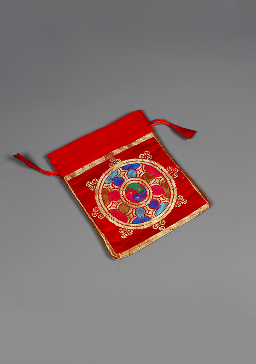 View full detailsDharma Wheel Brocade Drawstring Mala Red Bag