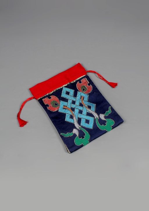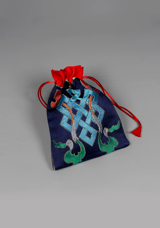 This beautifully handcrafted Eternal Knot brocade drawstring mala bag are perfect for keeping your prayer mala, bracelet, coins, pen drive, or smal...