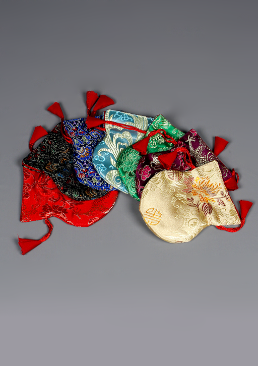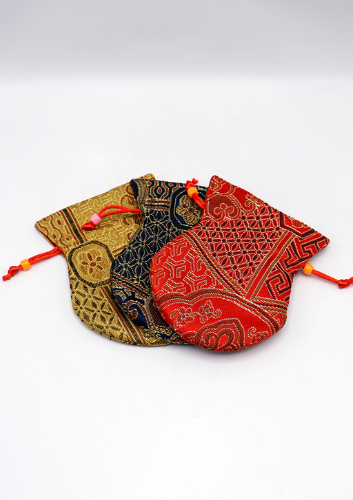 These beautifully handcrafted silk brocade drawstring mala pouches are perfect for keeping your prayer mala, bracelet, coins, pen drive, or small k...