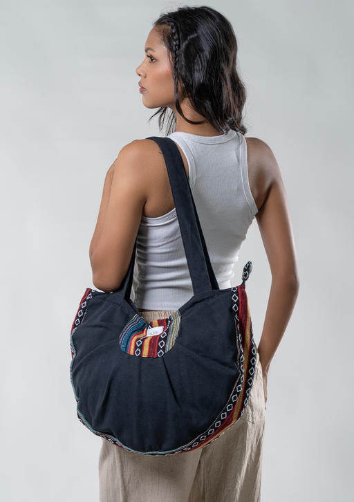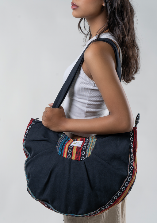 View full detailsCotton Crescent Shaped Shoulder Bag in Black