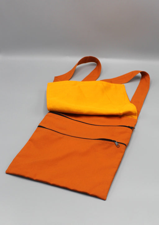 This side carry bag is made from cotton handmade in Nepal. This bag is useful for traveling as it has easily accessible four pouches with zipper cl...