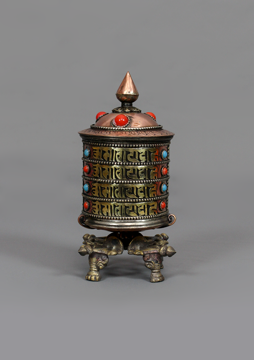 Copper Desktop Single Prayer Wheel With Double Dorjee Stand
