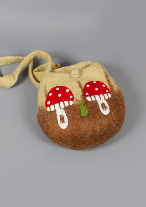 This Felt Round Mushroom Design Bag is a playful and charming accessory, carefully handmade by skilled women artisans in Nepal. Crafted from soft y...