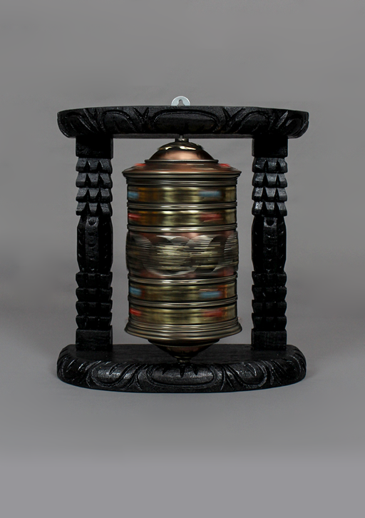 Wall Hanging Single Prayer Wheel With Mantra Carvings