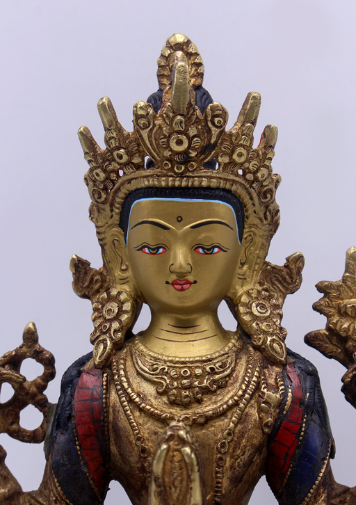 View full detailsStone Inlaid Copper Chenrezig Statue 9"H