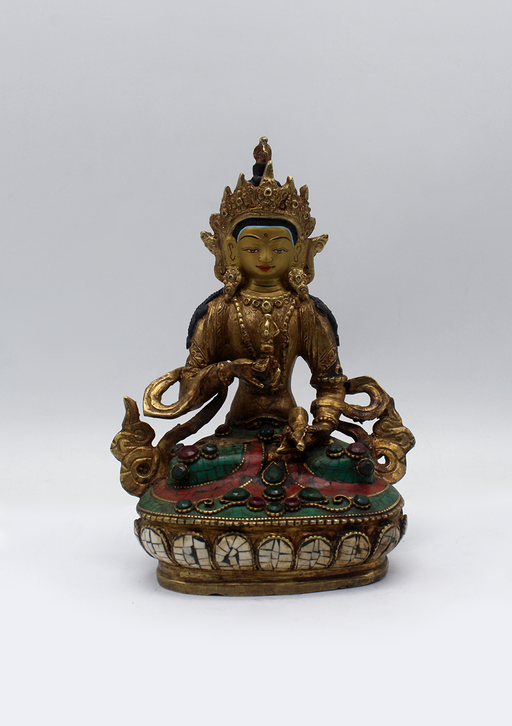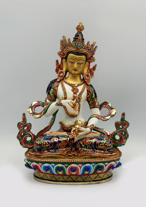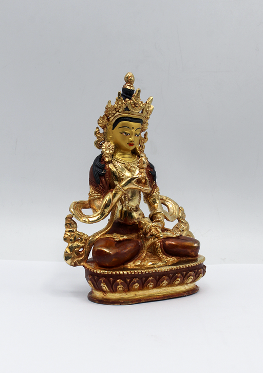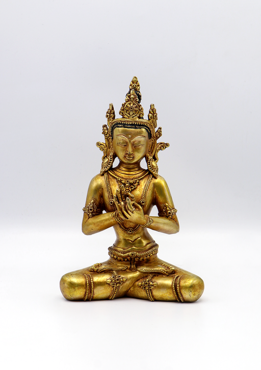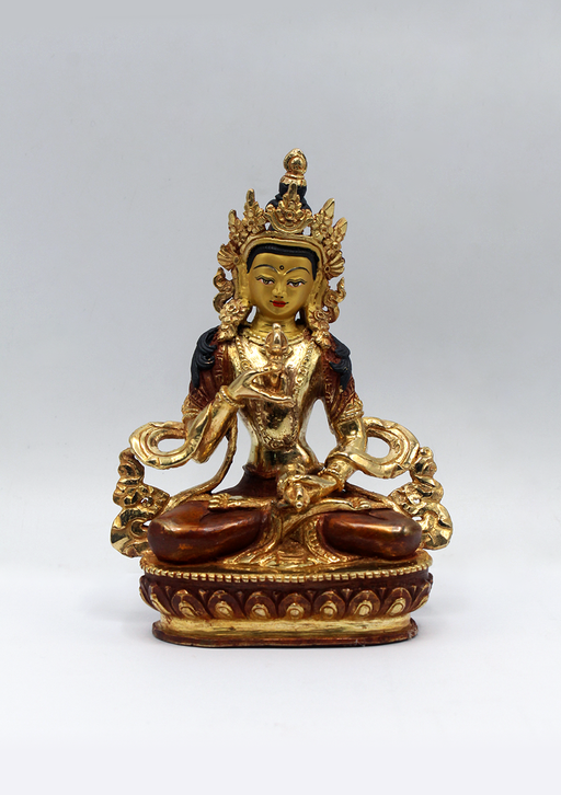 This partly gold-plated Vajrasattva Statue symbolizes purity, renewal, and spiritual clarity. Shown seated in meditation, Vajrasattva holds the va...