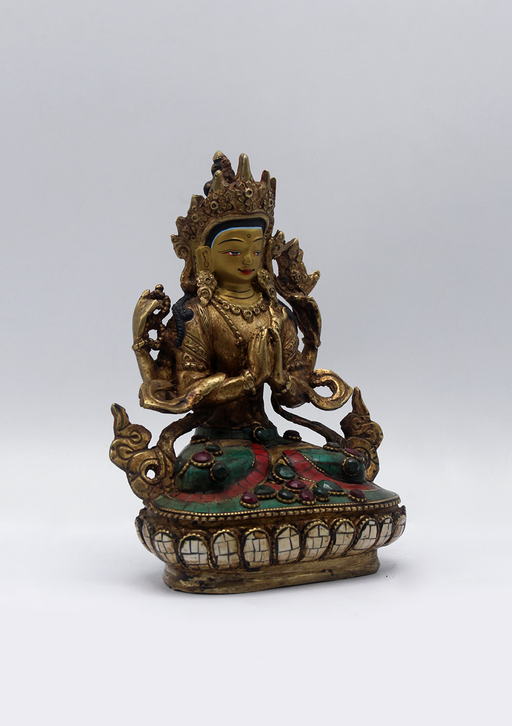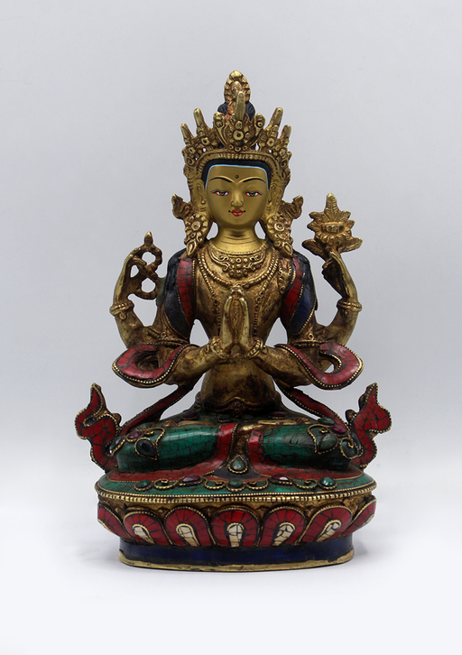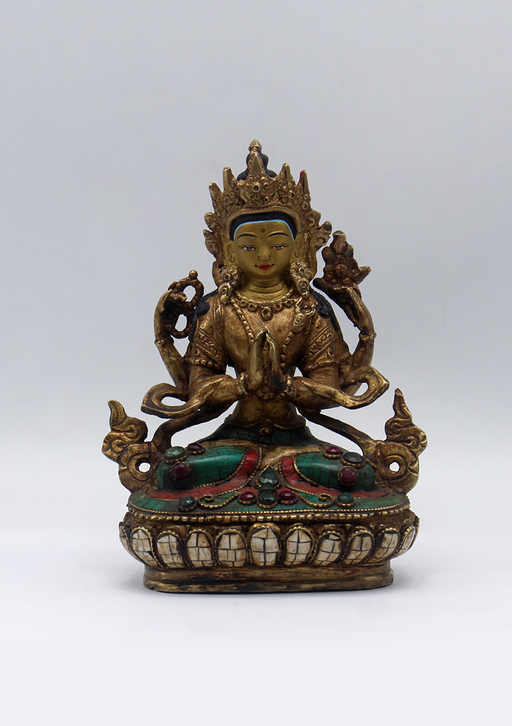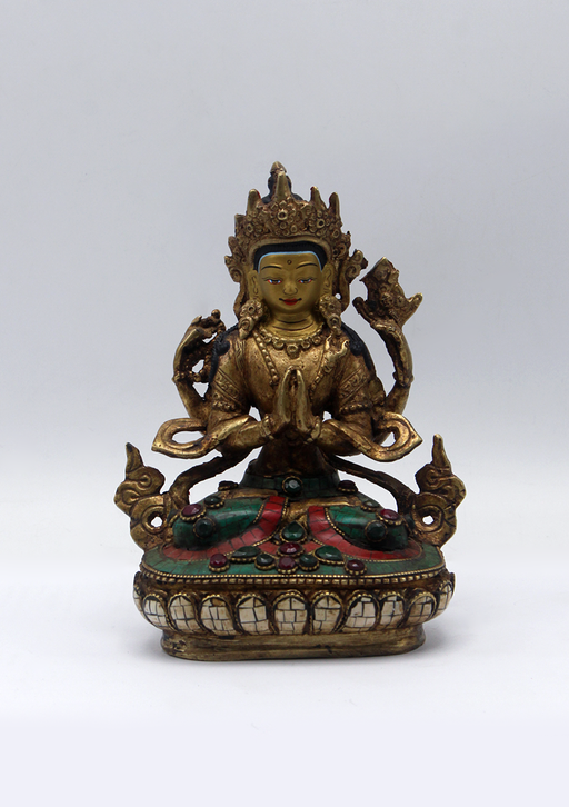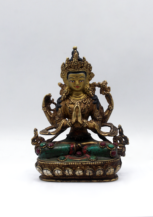 View full detailsStone Inlaid Copper Chenrezig Statue 5.5"H