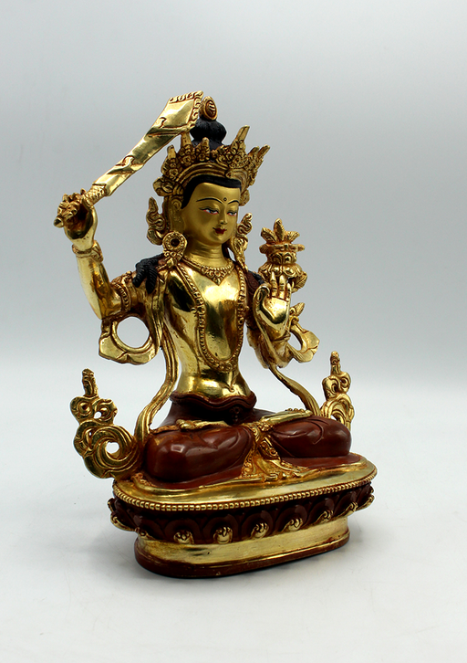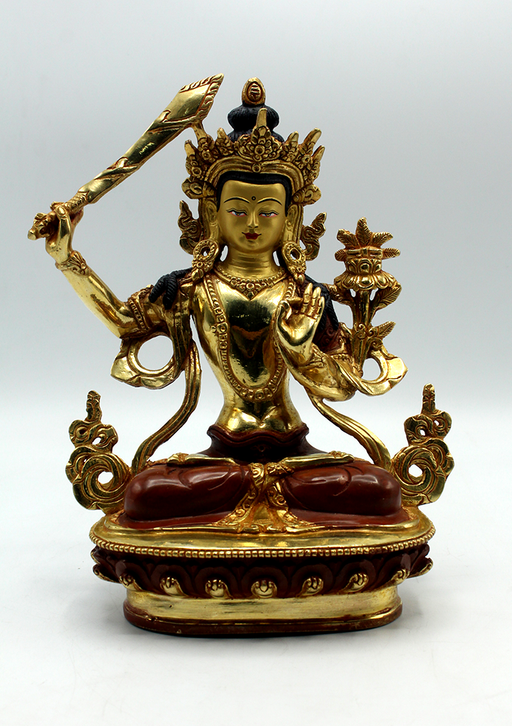The partly gold-plated Manjushri Statue represents the embodiment of wisdom and intellectual clarity. Seated in a meditative posture, Manjushri ho...
