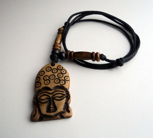 Meticulously hand carved, these religious necklace features pendants carved with Buddha images. The pendant is tied to a durable cord. The bones a...