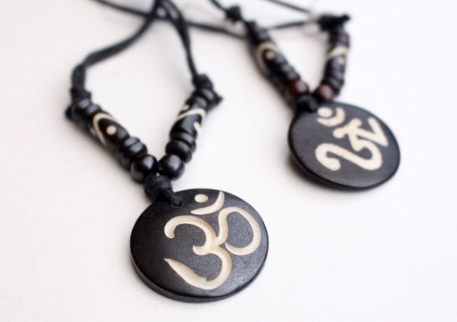 These are beautifully hand carved Water Buffolo Bone necklaces featuring a bone pendant with the carving of religious Hindu Om. Om is the most powe...