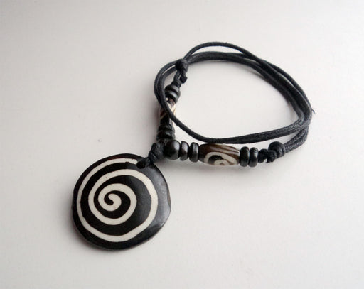These are spiral design bone pendants strung in a durable and adjustable thread. These are completely handmade products and size and design may va...