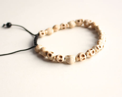 This is a bone bracelet. The bone beads are carved meticulously to form the shape of skull. It is a tribal design and are used in many cultures acr...
