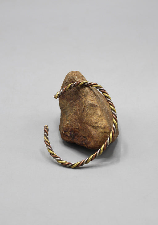 This is a beautiful bracelet handmade in Nepal. It is a flat twisted copper bracelet with brass plated cap on both ends. This bracelet is slightly ...