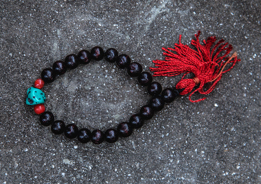 View full detailsDark Rosewood Wrist Mala with Turquoise and Coral Spacer