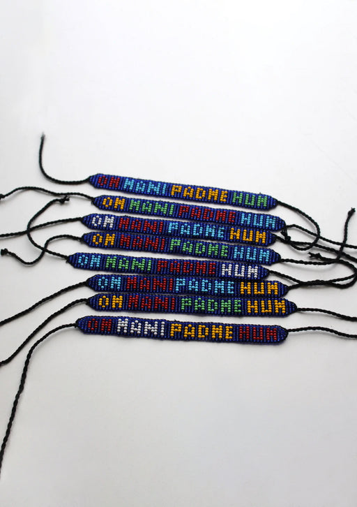 View full detailsBlue Multicolor Assorted Pattern Om Mani Padme Hum Glass Beads Bracelet