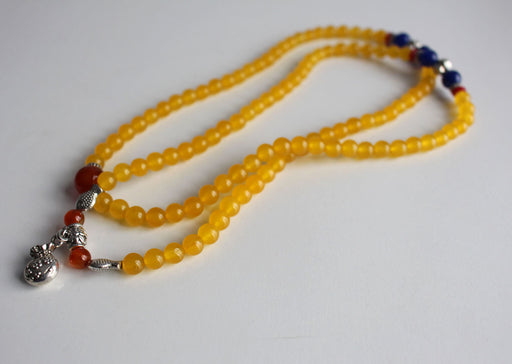 This is a beautiful Faux Amber Prayer Beads adjustable Mala consisting of 108 beads along with 3 spacers and fish and various other charms. The bea...