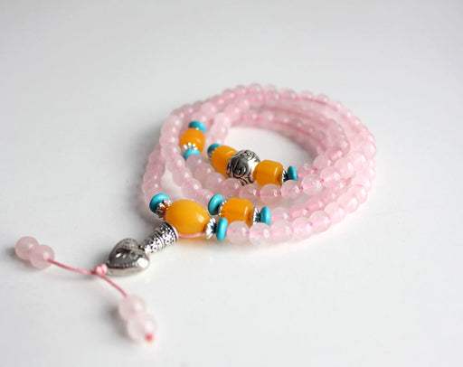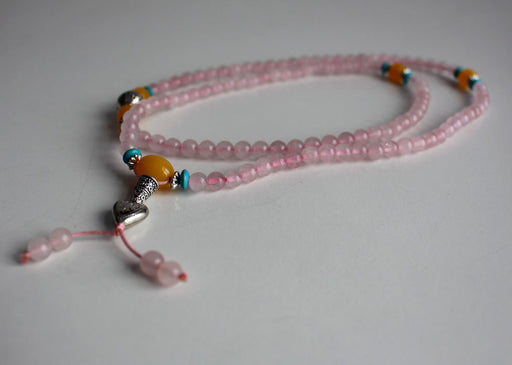 This is a beautiful Rose Quartz Prayer Beads adjustable Mala consisting of 108 beads along with 3 amber spacers and heart charm. The beads are 6mm ...