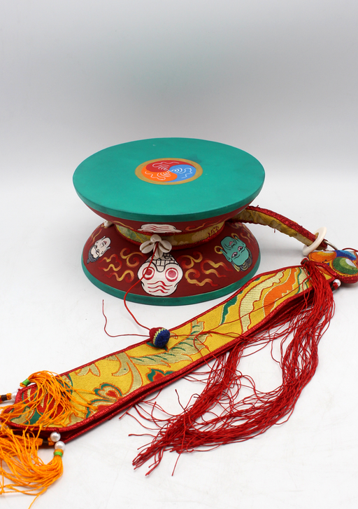 This is an exclusive wooden framed Chod drum damaru with a shiny finish handmade with care in Nepal. Damaru is a two-headed drum. It has significa...