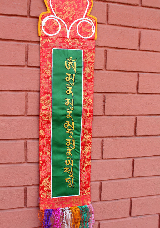 View full detailsTibetan Zambala Mantra Embroidered Polyester Brocade Wall Hanging Banner