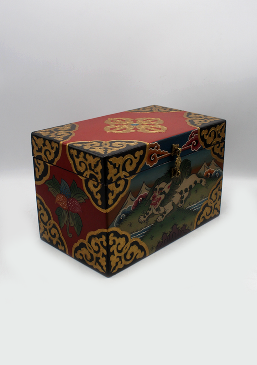 This particular box has a Snow Lion on the front. These beautiful large Tibetan boxes are hand crafted by one of the Newari Communities of Bhaktap...