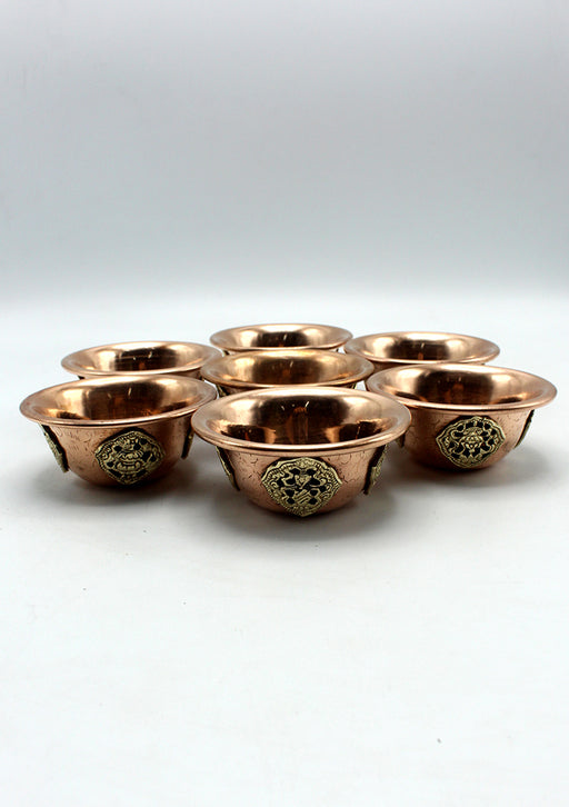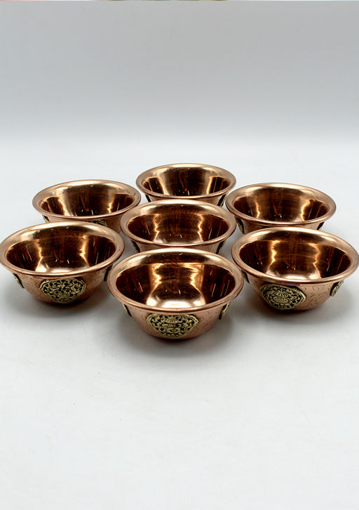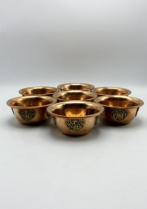 This is a set of seven Tibetan Eight Auspicious Symbol water offering bowl handmade in Nepal. This bowl is used for offering water during prayer or...