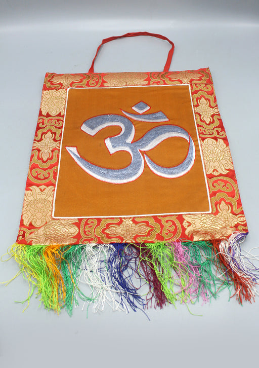 This is a brocade framed polyester Wall hanging banner from Nepal. This banner is embroidered with the OM symbol. The wall hanging has colorful tas...
