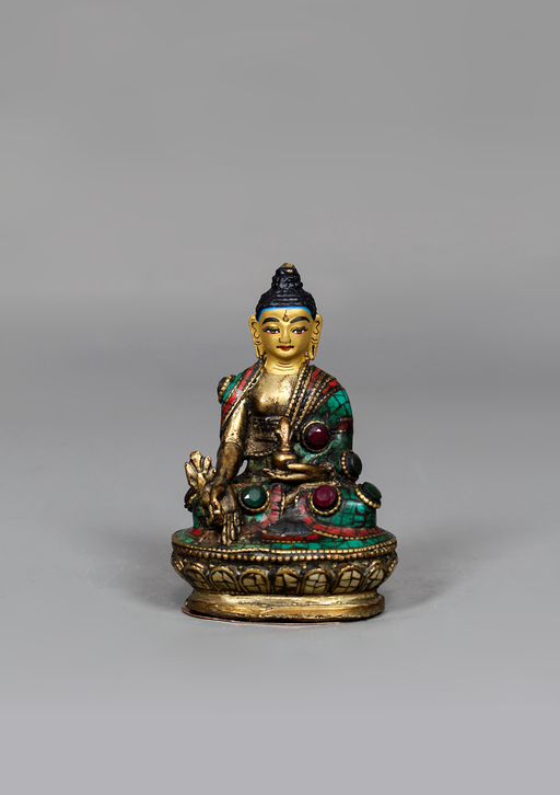 View full detailsStone Inlaid Copper Medicine Buddha Statue 3.25" H