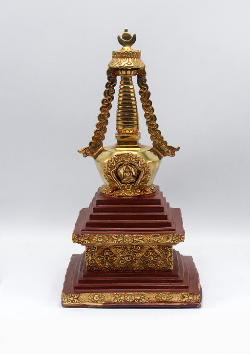 This Partly Gold-Plated Stupa is a sacred representation of enlightenment, wisdom, and spiritual awakening. Meticulously crafted, it features a pol...
