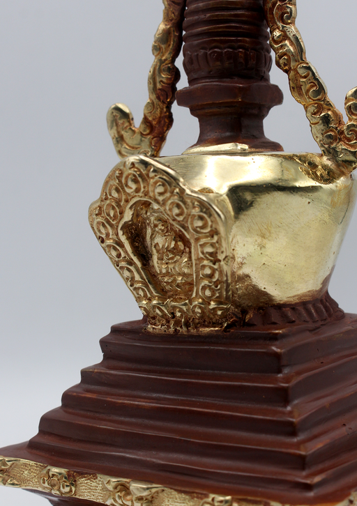 This partly gold-plated Buddhist Stupa, or Chorten, is a beautifully crafted symbol of enlightenment, embodying the Buddha's teachings and the path...