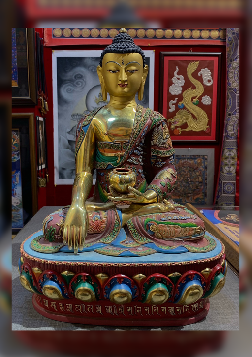 This is a Gold Plated Medicine Buddha statue handmade in Nepal. Medicine Buddha is also called Bhaisajya Tathagatta or healing Buddha. He is able ...