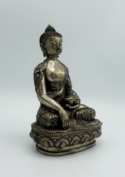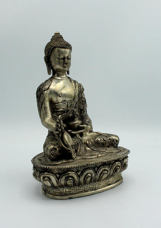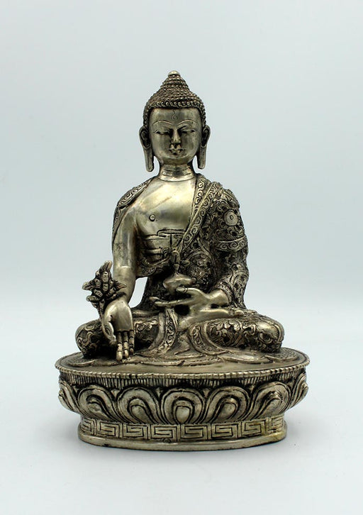 View full detailsWhite Metal Floral Motif Carved Medicine Buddha Statue 8 Inches