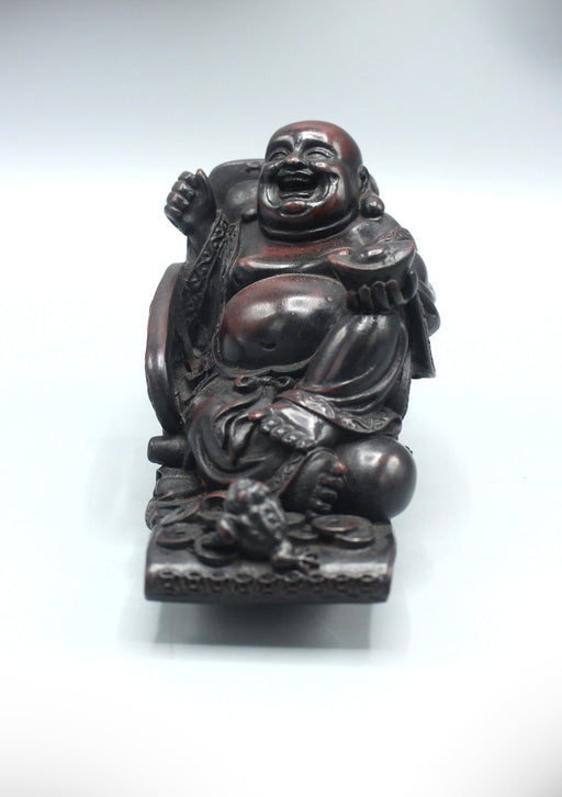 This is a beautiful resin statue of Laughing Buddha which sleeping. The statue is toned with Dark Brown color. He is seen holding a bowl in his han...