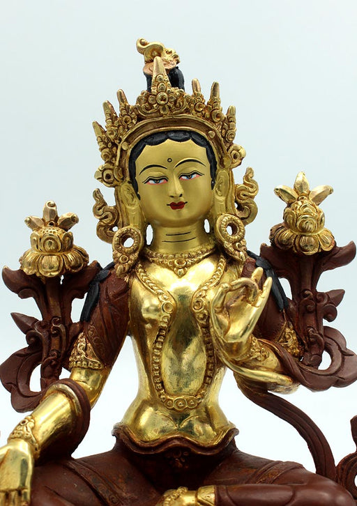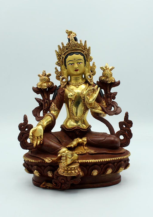 View full detailsPartly Gold Plated Copper Green Tara Statue 9" H
