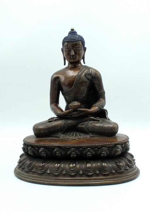 This is a handmade Copper oxidized Amitabh Buddha statue from Nepal. A dye using the lost wax technique is created by our master sculptor who speci...