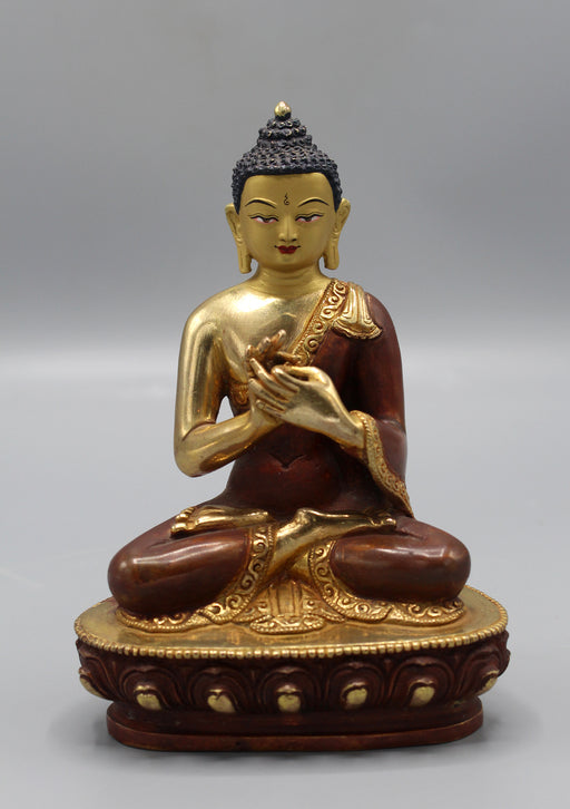 This is a beautifully handmade partly gold plated Vairochana Buddha. This statue is handmade by our Nepalese Artist. The face of the statue is gold...