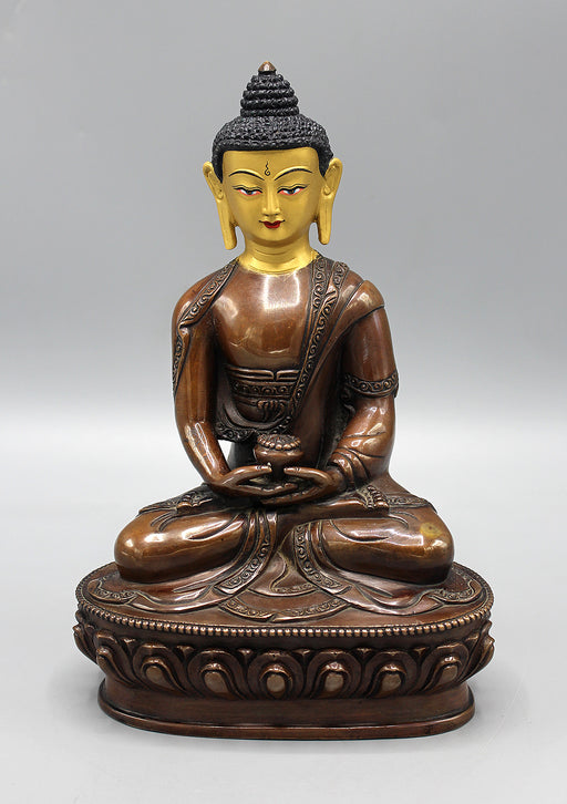 View full detailsCopper Oxidized Amitabha Buddha Statue with Gold Face Painting