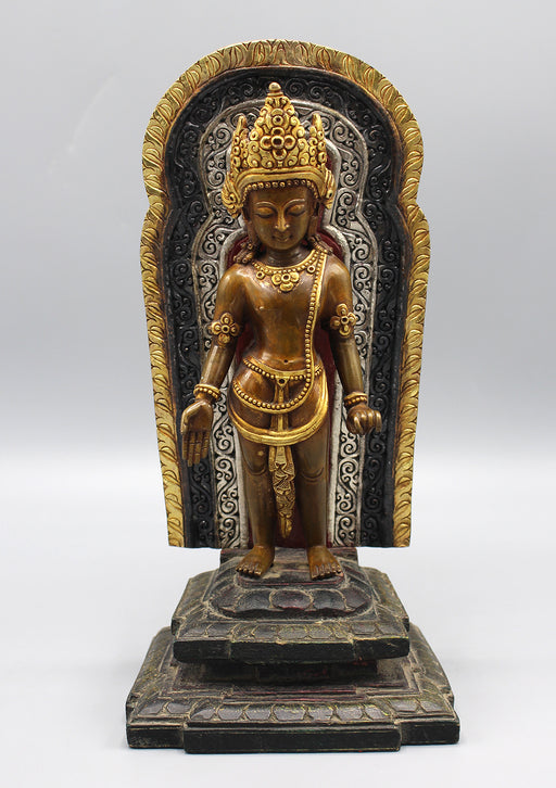 View full detailsGold Plated Copper Oxidized Lokeshwor Statue on Wooden Frame and Base