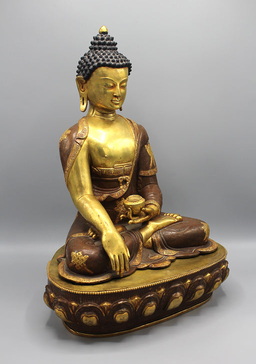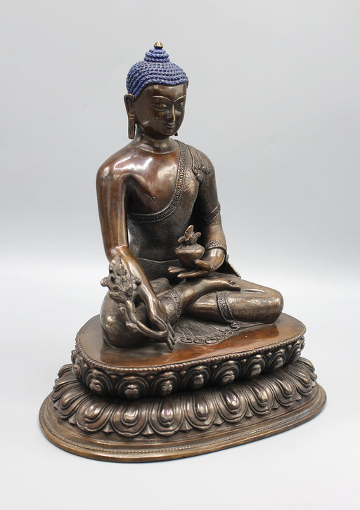 This is a handmade Copper oxidized Medicine Buddha statue from Nepal. A dye using the lost wax technique is created by our master sculptor who spec...